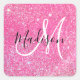 Girly Glam Hot Pink Glitzer Glitzern Monogram Name Quadratischer Aufkleber