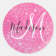 Girly Glam Hot Pink Glitzer Glitzern Monogram Name Runder Aufkleber