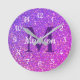 Girly Glam Lila Glitzer Monogram Personalisiert Runde Wanduhr