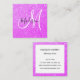 Diese schicke, gürtelige und glam quadratische Visitenkarte hat einen lila lila Glitzer Glitzern-Hintergrund auf beiden Seiten. Auf der Vorderseite der Visitenkarte steht Ihr Vorname in einem eleganten schwarzen Skript mit einem großen Monogramm Initial in Weiß dahinter. Dann auf der Rückseite sind Ihr Name, Ihr Jobtitel und Ihre Kontaktdaten mit einem weißen Hintergrund. Personalisieren Sie diese Visitenkarte einfach. Klicken Sie auf "Weiter anpassen", um die Textfarbe, den Schriftart und die Schriftgröße zu ändern. Diese Visitenkarte eignet sich perfekt für Makeup-Künstler, Friseure, Beauty-Berater, Event-Planer oder Salon-Besitzer.