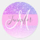 Girly Glam Pink Lila Glitzer Monogram Name Runder Aufkleber