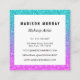 Diese schicke, gürtelige und glam-quadratische Visitenkarte hat einen hellen, farbenfrohen rosa/blau/türkis/aqua/lila/lila Glitzer Glitzern ombre Hintergrund auf der Vorderseite, und die Worte "Makeup Artist" in einem großen, fett weißen Drehbuch, mit Ihrem Namen in einem kleineren, fett schwarzen Drehbuch. Ihr Name, Ihr Titel und Ihre Kontaktdaten befinden sich auf der Rückseite. Personalisieren Sie diese Visitenkarte einfach, indem Sie Ihren vollständigen Namen, Ihren Jobtitel und Ihre Kontaktdaten hinzufügen. Klicken Sie auf "Weiter anpassen", um die Textfarbe, den Schriftart und die Schriftgröße zu ändern. Diese elegante Visitenkarte eignet sich perfekt für Makeup-Künstler, Friseur, Beauty-Berater oder Salon-Besitzer.