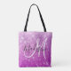 Girly und glam ombre lila Glitzer Glitzern Monogramm Name und erste Tote Tasche. Personalisieren Sie diese hübsche Tasche mit Ihrem Namen, Monogramm oder Initial. Sie können sogar die Textfarbe und den Stil des Schriftartes mit der Option Anpassen ändern!