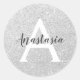 Girly Glam Silver Glitzer Glitzern Monogram Name Runder Aufkleber