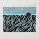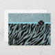 Girly Glitzer Silver Aquamarin Zebra Fügen Sie Ihr Postkarte