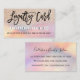 Die Loyalty Discount Card ist die perfekte Lösung für ein trendiges, stilvolles und modernes Business. Dieses Design zeichnet sich durch eine schicke, mädchenhafte und hübsche schwarze Pinseltypografie auf einem glamourösen und mädchenhaften Imitat aus, der mit rosa, pfirsichfarbenen, blauen und lila irisierenden holografischen ombre-Hintergrund gedruckt wurde. Diese Karten werden Ihnen diese persönliche und berufliche Touch zu Ihrer Geschäfts- und Karrierewerbung hinzufügen. ***WICHTIGE HINWEIS FÜR DESIGN: Für individuelle Designanfragen, wie z.B. passende Produktanfragen, Farbänderungen, Platzierungsänderungen oder andere Änderungswünsche, klicken Sie bitte auf den "KONTAKT"-Button oder senden Sie eine E-Mail an den Designer direkt unter lafemme.art@gmail.com. Sie können ihr sogar eine Anfrage für ein komplett individuelles und neues Design schicken.