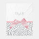 Ein trendiger, grauer Tigerstreifen-Muster aus Fleecedecke mit einem Bild eines gürtelrosa Satinbogens. Personalisieren Sie das, indem Sie den Namen Ihres Lieblingsmädchens hinzufügen. Flachbild, NICHT mit einem tatsächlichen Band angebracht.