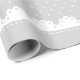 Schönes hellgraues und weißes Packpapier mit Polka-Punkten, Streifen und Spitzen-Design.
