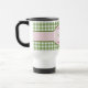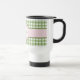 Eine niedliche Landart-Grünginghammonogramm-Reise-Tasse mit einem rosa Ginghamaufkleber und einem girly mit Filigran geschmückten rosa Band. Personifizieren Sie, indem Sie Ihren Namen und Initialen addieren. Appelliert dem stilvollen und weiblichen Mädchen.