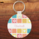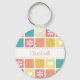 Der Schlüsselanhänger ist in einem hübschen, quadratischen Fliesenmuster gehalten, mit modernen abgerundeten Ecken in hübschen Frühlingsfarben, die mit niedlichen Herzen und Retro-Blume geschmückt sind. Personalisieren Sie, indem Sie den Namen eines Mädchen Mädchen Mädchen in diesem Retro-Mod-Design in den Farbtönen von Korallenrosa goldene gelb, und türkisblau.