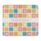 Ein girly quadratisches Muster Ausschnitt-Brett mit gerundeten Ecken der modernen Art in den hübschen Frühlingsfarben, verziert mit niedlichen Herzen und retro Gänseblümchen-Blumen. Personifizieren Sie durch das Hinzufügen des Namens jedes möglichen girlie Mädchens diesem retro Modfall in den Schatten des korallenroten rosa Goldrutengelbs und Türkisblau. Ursprüngliches Kunstcopyright von ©OhSoGirly