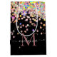 Girly Holographic Glitzer & Sparkle Monogram Black Mittlere Geschenktüte