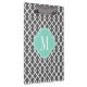 Mode und elegantes dunkelgraues Holzkohlen- und weißesdiagonales Diamantgittermuster. Türkisblaurahmen. Personifizieren Sie ihn mit Ihrem Monogramm, Namen oder Initialen. Klicken Sie an "besonders anfertigen es" Knopf an, wenn Sie wollen, um irgendwelche Änderungen am Entwurf zu tun. Wählen Sie Schriftartart und -farbe. Modisches geometrisches Muster für girly Mädchen.