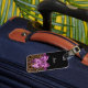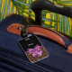 Reise auf Mode mit diesem stilvollen braunen Pelzleoparddruck-Gepäckumbau mit einem eleganten lila Band gebunden in einen Chicbogen. Personifizieren Sie diesen modernen und noblen Tierdruckentwurf, indem Sie Ihren Namen addieren. Ebenedruckbild, nicht tatsächlicher Pelz oder Band.