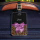 Girly Leopard-Druck-eleganter lila Bogen und Name Gepäckanhänger