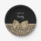 Fügen Sie Ihrem Party einen Hauch von Mode mit diesen gürtelbraunen Jaguardruckpapier-Tellern mit einem schicken, bräunlichen Band in einem niedlichen Bogen. Ein Teenager würde Liebe haben, ihren Namen auf diesem stilvollen Tierdesign personalisiert zu haben. Flachdruckbild, NICHT tatsächlicher Bogen.