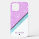 Ein modernes mädchenhaftes iPhone 12 Gehäuse mit Streifen aus lila, blauem und schwarzem Glitzer. Eine elegante und stilvolle Handy-Hülle. Für Sie entworfen von BlackBerry Boulevard