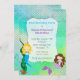 Farbige Geburtstag / Pool-Party Einladung in Grafik von einer Meerjungfrau Hintergrund und niedliche Grafik von zwei Meerjungfrauen. Personalisieren Sie diese lustige, mädchenhafte Einladung zum Anzug Ihres Party benötigt.