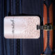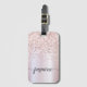 Girly Blush Rose Gold Glitzer Glam Metallic Monogram Name Script Custom Personalisiert Luggage Bag Tag. Diese Design mit Ihrem Vornamen in einem hübschen handgeschriebenen Stil Swash Schwanz Schriftart Typografie auf Imitaten Rose Gold metallische Folie mit funkelnden Glitzer Rand. Diese sind einfach zu anpassen. Stilvolles Frauengeschenk für Hochzeit, Brautparty, 16 Geburtstag, Abschluss und für alle, die Lieben glamourösen Stil.