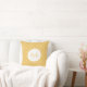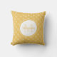 Ein mädchenhaftes, quadratisches Kissen mit einem mimosa gelben Kreismuster mit modernen Herzen in ihnen. Personalisieren Sie, indem Sie Ihren Namen und mit Monogramm Initiale zum hübschen Kreis Rahmen. Teil der Mimosa Hearts Bedroom Decor Summer Color Collection.