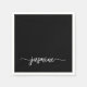 Moderne Minimalistische elegante Schwarze Weibchen Monogram Name Script Signature Custom Personalisiert Paper Napkin. Dieses Design mit Ihrem Vornamen in einem hübschen handgeschriebenen Stil Swash Schwanz Schriftart Signatur Typografie (oder Kalligrafie) weiße Skript auf schwarzen Farbhintergrund. Diese sind einfach zu anpassen. Ideal für Geburtstag, Hochzeit, 16 Geburtstagsparty, Babydusche, Brautparty, Junggeselinnen-Abschied, für Graduiertenfeier und es ist für das Mädchen, das einzigartige minimalistische Dinge Lieben.