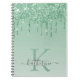 Moderne, gürtnig grüne Glitzer Tropfen auf hellgrünen Hintergrund Spiralheft. Dieses Design bietet pastellfarbene, grün leuchtende Glitzer-Tropfen auf hellgrünem Hintergrund mit Namen und Monogramm-Textvorlage. Der Name wird mit einem Wirblen Schriftsatz geschrieben. Perfektes weibliches Geschenk für Mädchen. Wenn Sie Hilfe oder passende Artikel benötigen, kontaktieren Sie mich bitte.