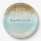 Girly Mint Watercolor Ombre Gold Glitzy Glitzer Pappteller
