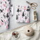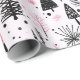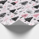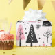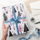 Dieses spielerische und moderne Weihnachtsmuster besticht durch eine skurrile Anordnung stilisierter Bäume und abstrakte Schneeflocken in Schwarz und Rosa auf einem weichen pastellrosa Hintergrund. Das Design verbindet einfache geometrische Formen mit handgezeichnet Elementen, um eine trendige, mädchenhafte Ästhetik zu schaffen