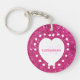 Diese Schlüsselkette weist einen rosa, gürteligen Hintergrund mit einem weißen Herzzentrum und einem Vornamen und einer Anfangsbuchstabe auf. Personalisieren Sie die Textfelder mit einem Vor- oder Nachnamen und dem Initialnamen, entfernen Sie einen oder beide oder klicken Sie auf Anpassen, um den gewünschten Schriftart auszuwählen.