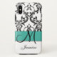 Girly Monogramm-Türkis-Schwarz-Wirbels-Damast Case-Mate iPhone Hülle