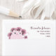Einfache, moderne, niedliche Cartoon Katze mit violetten Blumen kehrt das Adressetikett zurück.