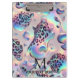 Girly Opal Leopard Print Elegant Office or School Clipboard – Custom Name & Monogram