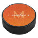 girly modern orange glitter Sparkles Monogram script name hockey puck ,holiday - birthday gift for women .