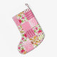 Ein WeihnachtsStrumpf, der ein Patchwork kennzeichnet, inspirierte die Zickzack und des Ginghams enthält Muster des Entwurfs, der Blumen, der Streifen, des Polkapunktes, Paisleys, mit einem girly rosa Farbentwurf.