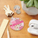 Ein Magnet mit einem Patchwork-Design, das Polka-Punkte, Zickzack, Paisley, Rose, Gingham und Streifen umfasst. Personalisieren Sie mit Ihrem Namen.