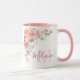 Lieblich Girly Blush Pink und Coral Rose benutzerdefinierte personalisiert Name Monogram Tasse. Niedliches feminines Design, in Aquarellfarbe Rosa, Korallen oder Pfirsichfarben, Blumengestalt mit grünem Blattwerk auf Weiß. Funktion Monogramm und eine handgeschriebene Skriptnamensvorlage. Einfaches Hinzufügen von Namen & Monogramm. Großartiges romantisches personalisiertes Geschenk für Mädels und Frauen zum Geburtstag oder zu jedem Anlass.