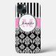 Girly Pink Black Damask Mit Monogramm gestrichen Case-Mate iPhone Hülle