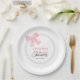 Moderne und elegante Brautparty-Papierplatte mit niedlichem, rosafarbenem Wasserfarbenbogen mit weißem Perlenkreisrahmen und lebendigem Kalligrafietext.