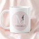 Girly Pink Elegant Black Bow Initial Niedlich Mono Kaffeetasse
