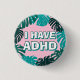Dieser tropische Knopf zeigt den Slogan "Hallo, ich habe ADHD" in einem fett weißen Schriftart, umgeben von einem Rand von türkisfarbenen grünen Monstera Dschungel-Blätter, auf einem pastellrosa Hintergrund. Sie können den Text nach Bedarf bearbeiten. 🌴 Für weitere medizinische Buttone besuchen Sie mein Geschäft: Zazzle.com/Elder_Vitality 🌴 Für benutzerdefinierte Bestellungen, schreiben Sie mir auf Zazzle