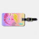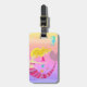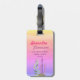 Girly, Cartoon, zauberhafte kleine Meerjungfrau mit rosa lila Schwanz in Kombination mit gelb rosa Ozeanwellen und bezaubernden bunten Seestern. Niedlicher, einzigartiger, skurriler Schlüsselanhänger für Mädchen, mit individuellem Initial an der Vorderseite und eigener Adresse an der Rückseite.