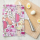 Vergnügen mädchenhaft rosa gemusterte Küchentücher für Mädchen, die Liebe der Gesundheit Wellness-Center oder Kosmetikerinnen. In einem Cartoon mit mädchenhaften Badezimmern und Pflegeartikeln wie Bademänteln, Seife, Badewanne und Blasen.