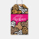 Girly Pink Playful Animal Print Herz Name Geschenkanhänger