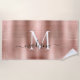 Girly Pink Rose Gold Brushed Metal Script Monogram Strandtuch
