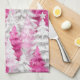 Girly Pink Silver Glam Christmas Trees Stripes Geschirrtuch