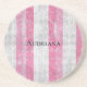 Girly Pink Silver Stripes Sparkle Christmas Getränkeuntersetzer