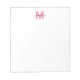 Girly Bright Pink Monogram Notepad. Dieses fröhliche und feminine Design besticht durch einen klaren, weißen Hintergrund, einen kühlen und fröhlich hellen rosa Anfangsbuchstaben in der oberen Mitte und einen eleganten schwarzen Schriftzeichen-Namen darunter. Das spielerische und dennoch raffinierte Layout verleiht jedem Schreibtisch oder jeder Schreibtischkollektion eine Touch Persönlichkeit. Dieses Notizblock eignet sich ideal zum Zusammentragen von Erinnerungen, zum Erstellen von Aufgabenlisten oder zum verlass von Süßigkeiten. Es verbindet die praktische Seite mit mädchenhaftem Charme. Ob als persönliche Leckerei oder als nachdenkliches Geschenk, sein helles und fröhliches Design ist ideal für jeden, der einen farbigen Pop mit einer zeitlosen Touch Lieben. Eine unterhaltsame Art und Weise, Ihre täglichen Noten besonders zu gestalten.