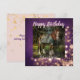 Girly rosa und lila Geburtstagskarte mit vergoldeten Glitzern und Glitzer-Hintergrund und ein magisches Pferd in Märchenbekleidung. Personalisieren Sie die Kartenvorderseite mit dem Namen Ihres Geburtstagskarls und ersetzen Sie das Foto, wenn Sie möchten. Behalt oder personalisiere die Nachricht auf der Rückseite "Möge dein Tag magisch sein und alle deine Wünsche wahr werden" in einem beliebten und hübschen Script-Schriftart.