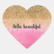 Girly Pink Watercolor Gold Glitzer Glitz Confetti Herz-Aufkleber