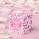 Rosa und weiße Leopardendruckmuster 2" quadratische Greifkästen mit Ihrer Danksagung auf rosa Imitat-Folie auf der Vorderseite in schicken Schriften. Schöne zum Geburtstag Party Gefälligkeitsboxen und mehr. PASSENDE Artikel in unserem Geschäft.